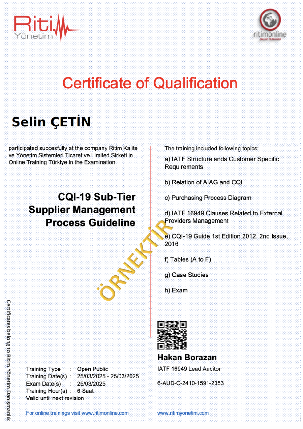 CQI-19 Alt Tedarikçi Yönetimi Sistemi Eğitimi